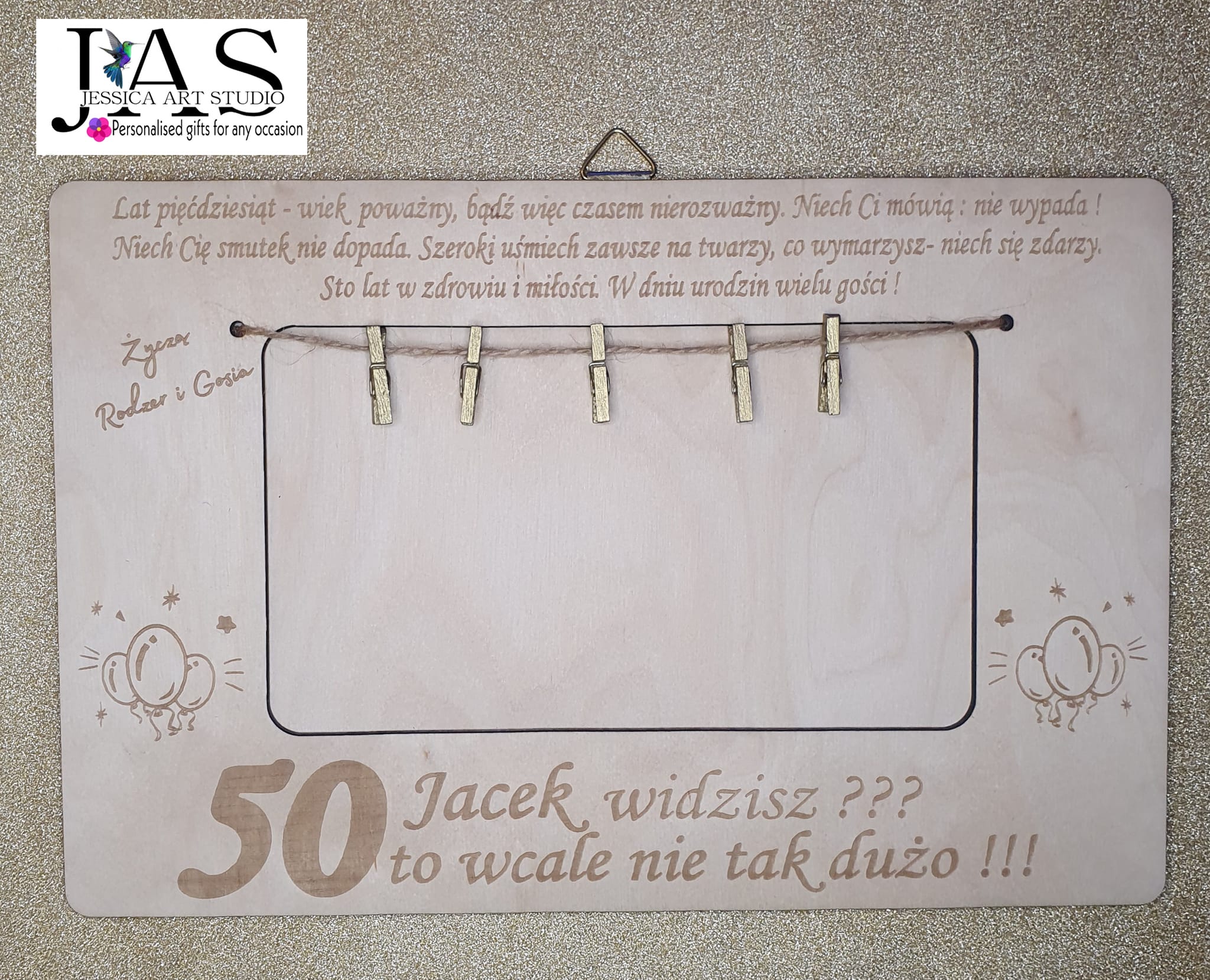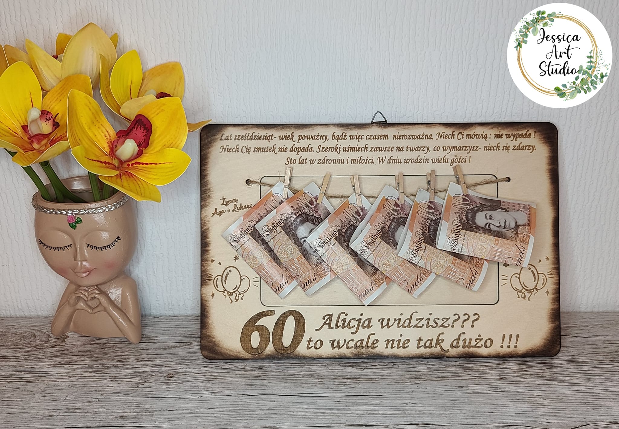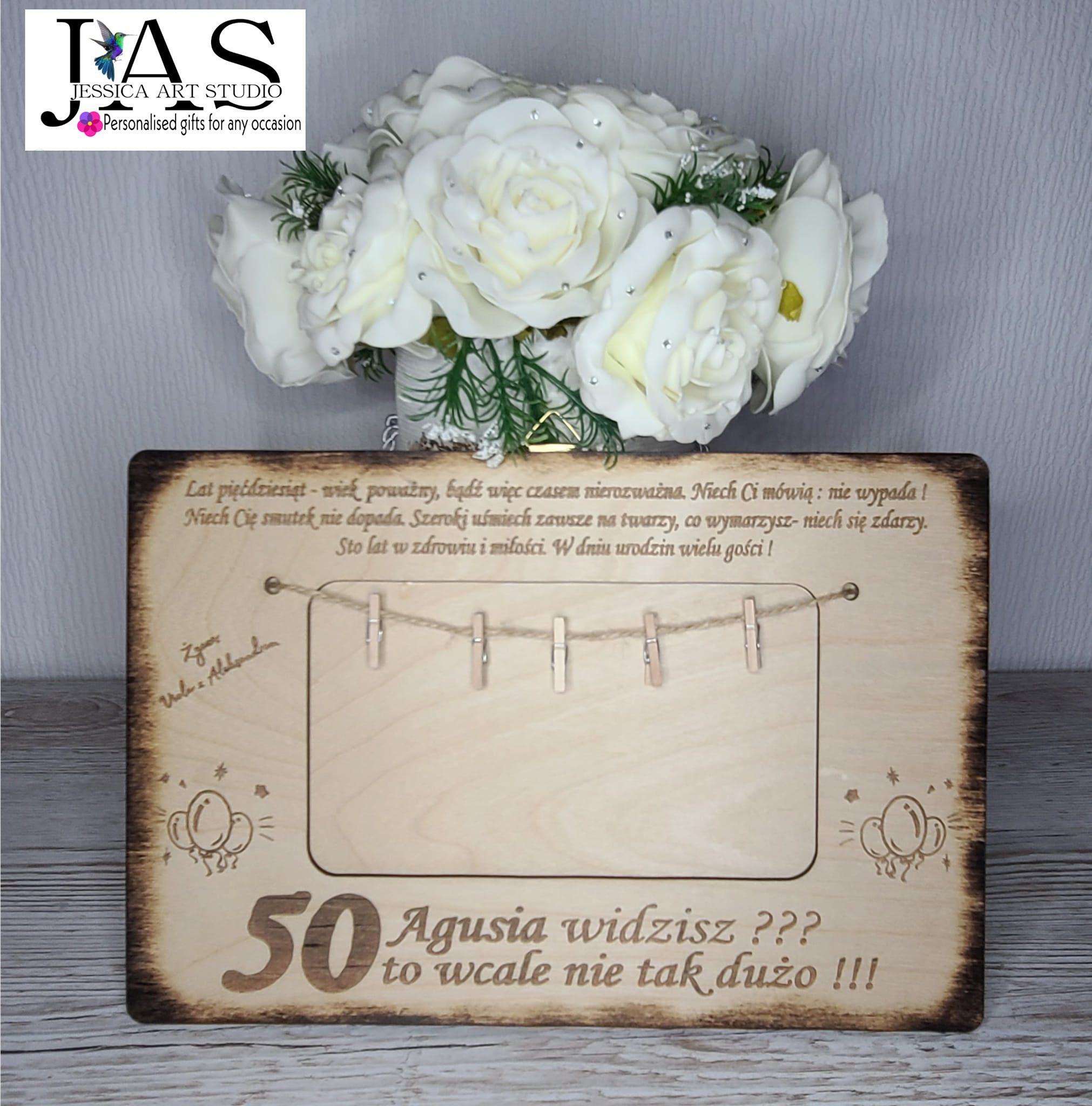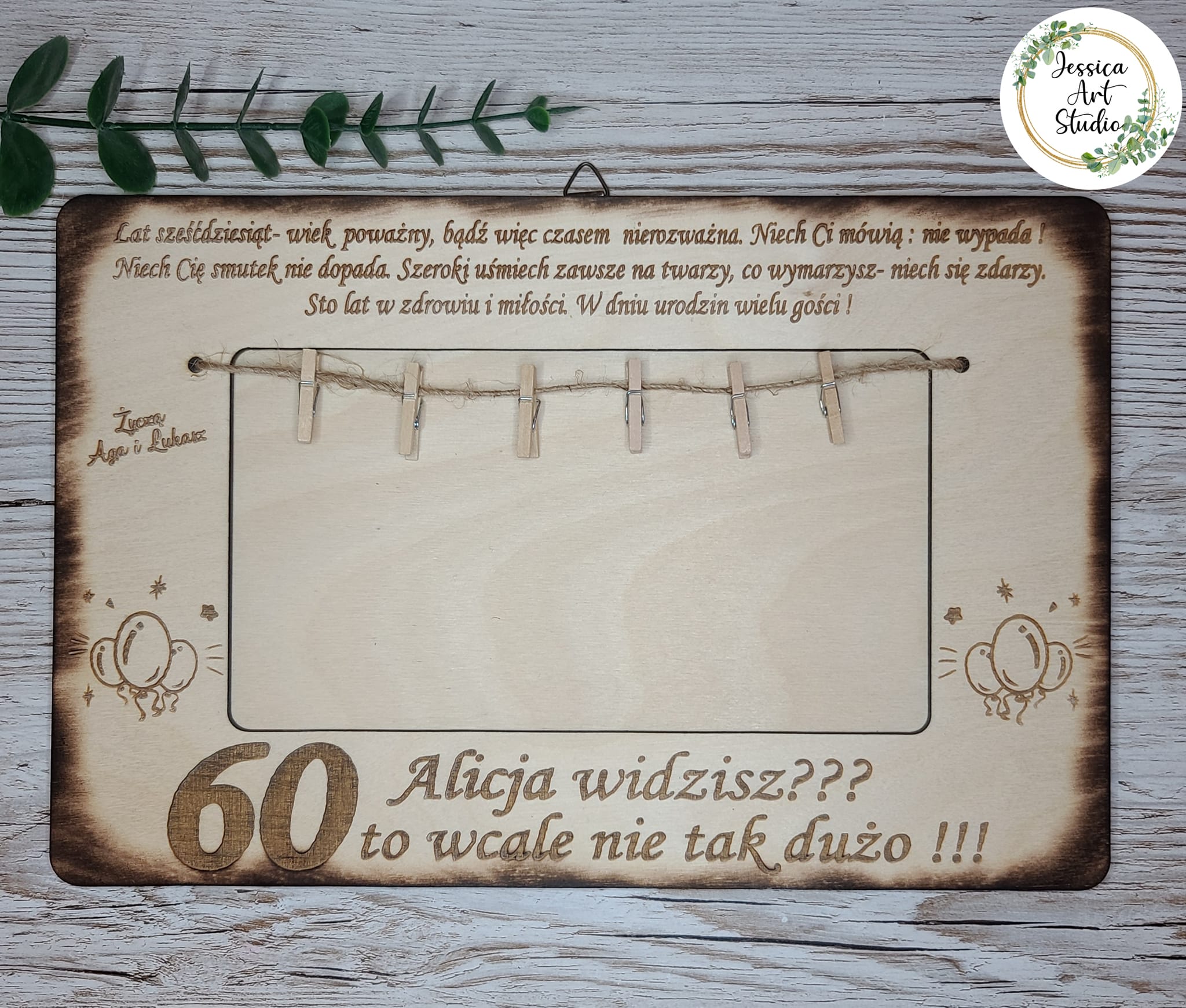 😄 Zamiast zwykłej koperty podaruj wyjątkową, drewnianą ramkę z klamerkami i sznureczkiem, która zrobi prawdziwe wow na każdej imprezie! 🎉 To idealny sposób, by wręczyć pieniądze, bilety czy voucher w oryginalny i stylowy sposób.