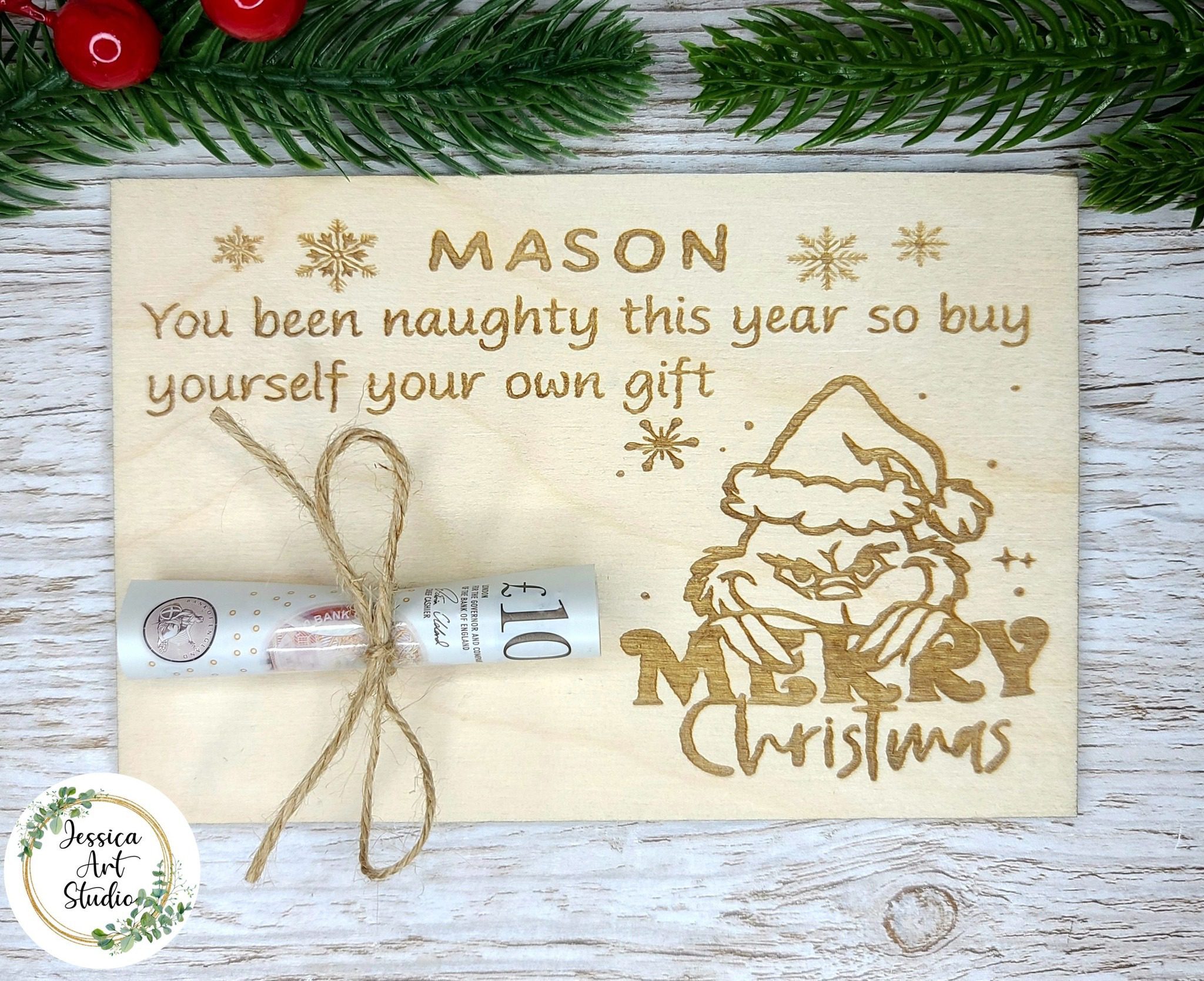 🎄💸 Drewniany Świąteczny Bon Podarunkowy z Grinch – dla tych, co byli „naughty”! 😈