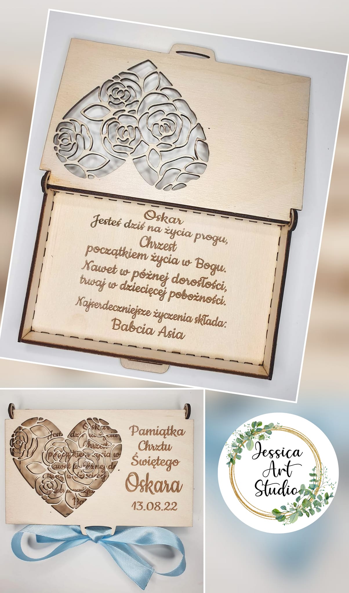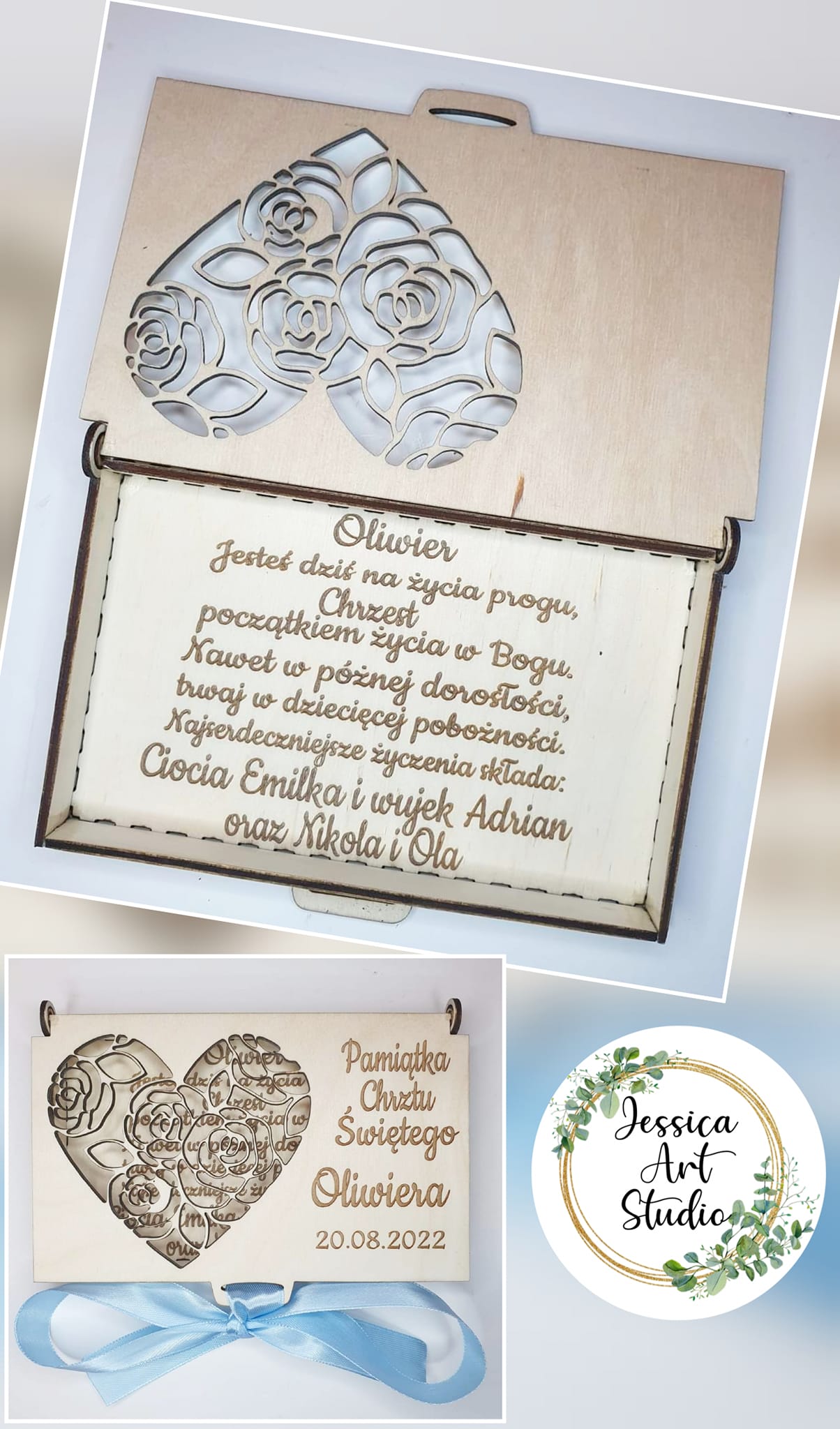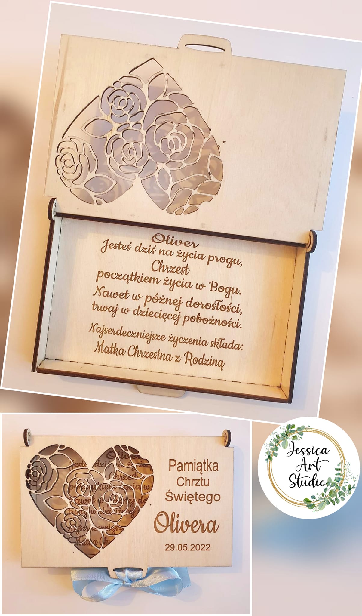 Nasza personalizowana, ręcznie wykonana pamiątka to idealny wybór! Subtelne laserowe grawerowanie i eleganckie wycięcia nadają jej niepowtarzalnego charakteru.