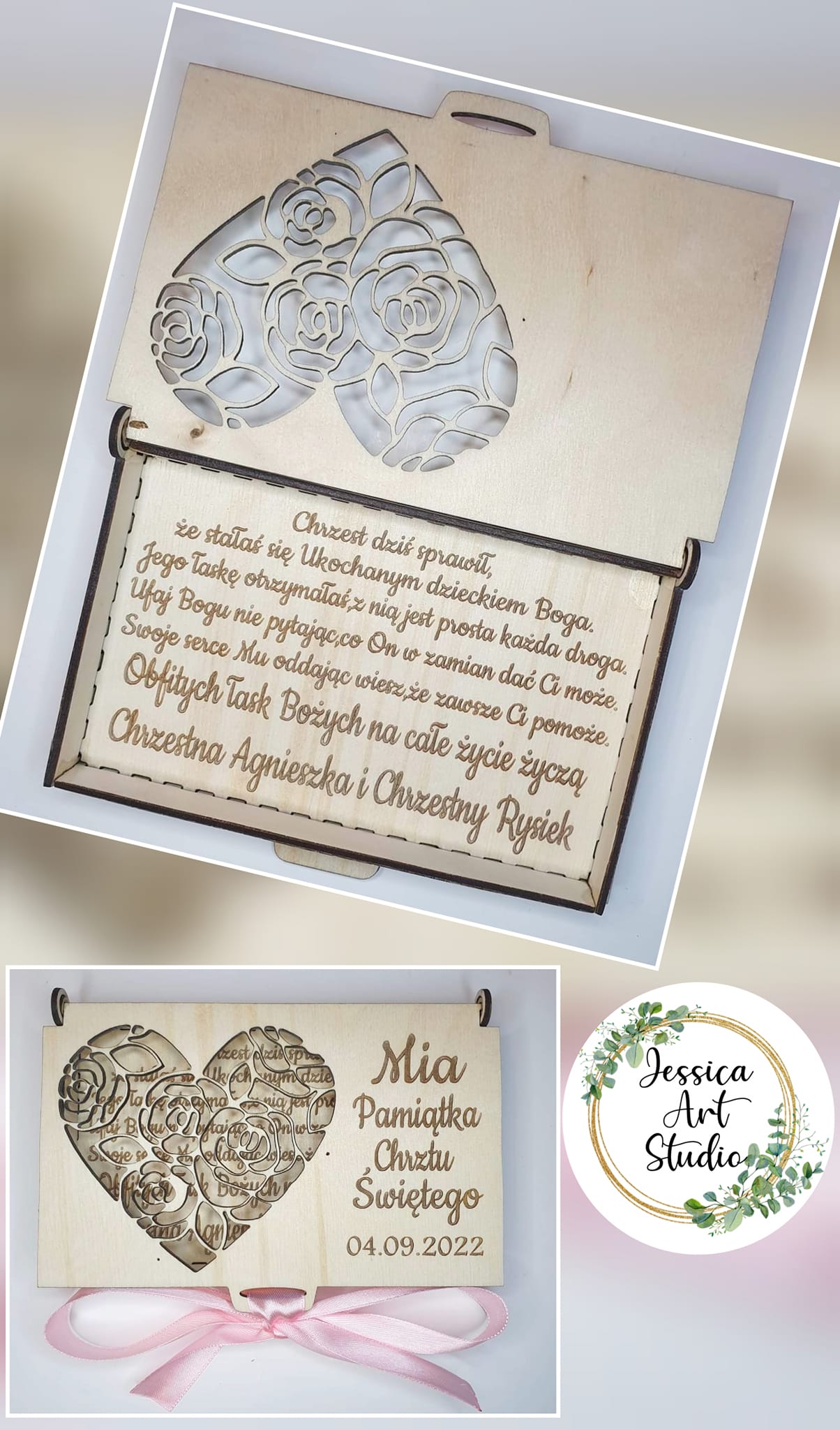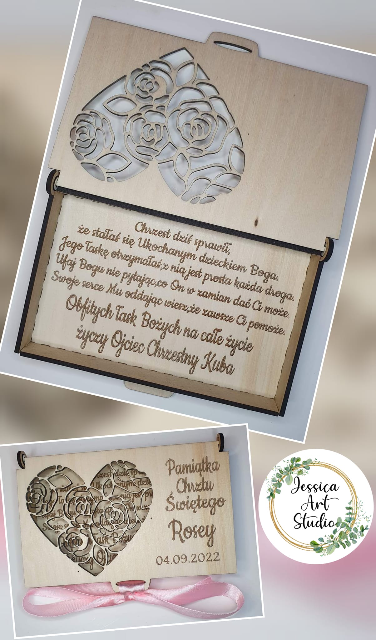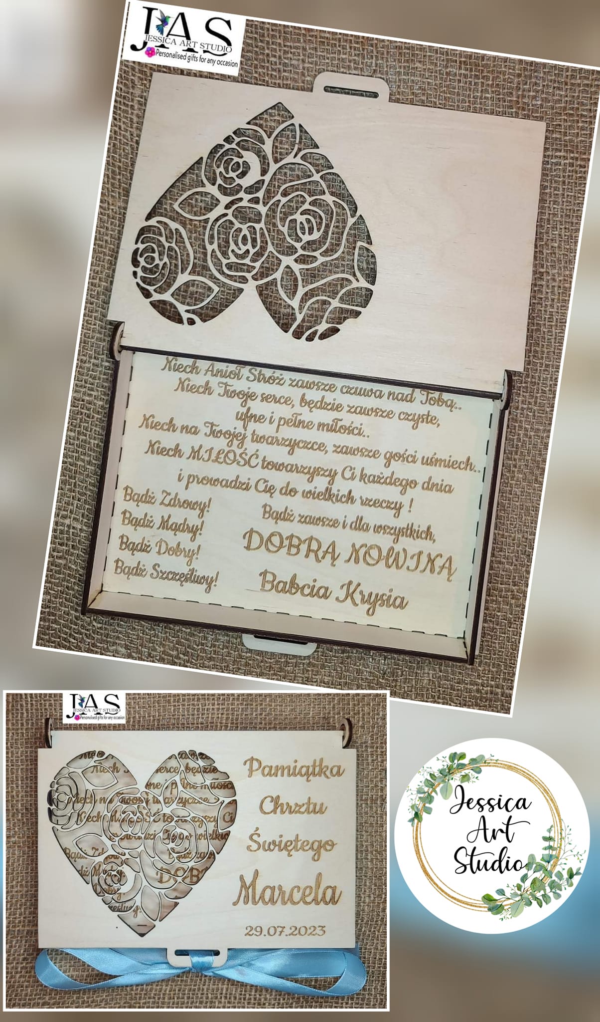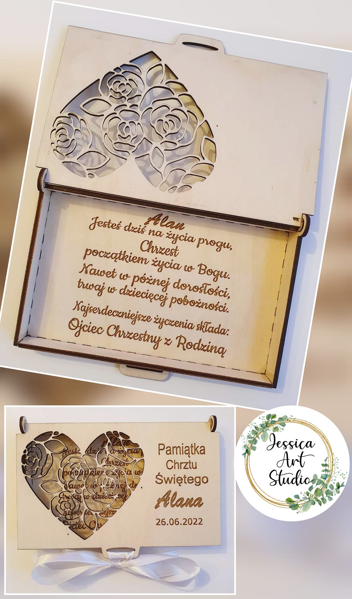 Nasza personalizowana, ręcznie wykonana pamiątka to idealny wybór! Subtelne laserowe grawerowanie i eleganckie wycięcia nadają jej niepowtarzalnego charakteru.