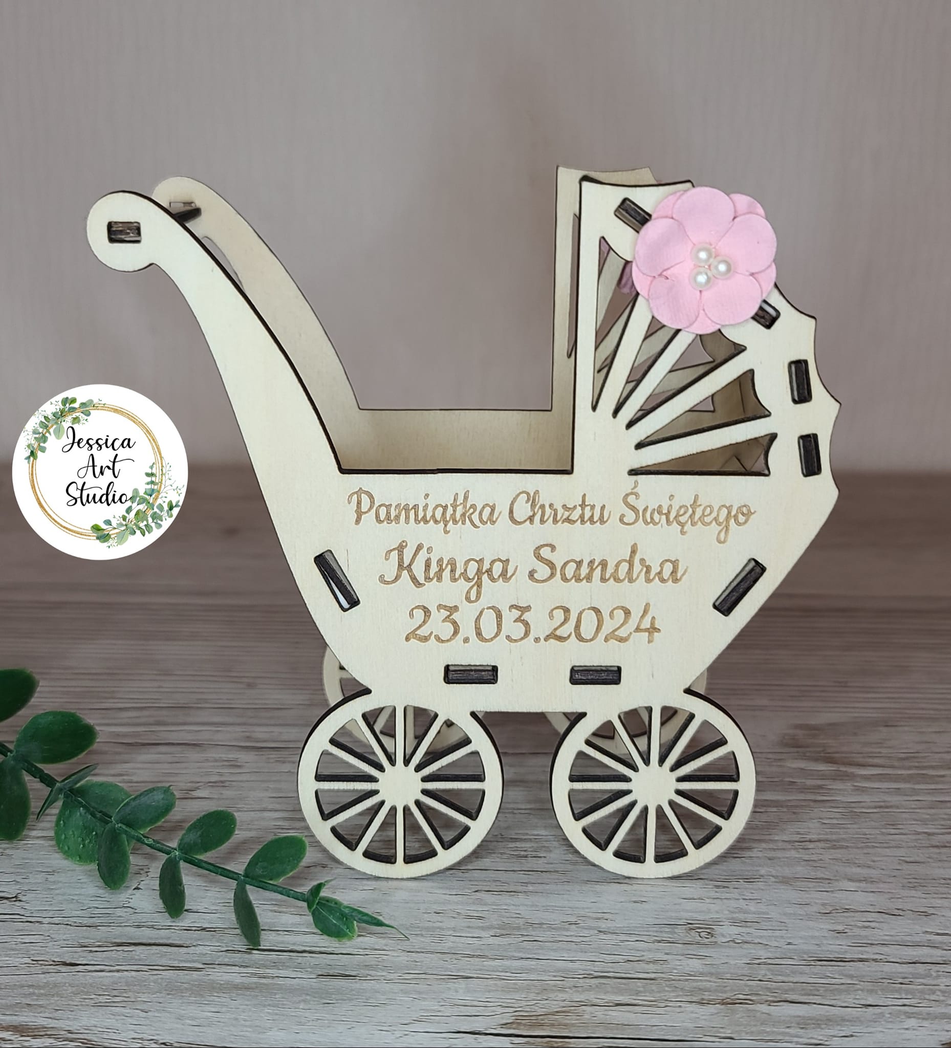 👶 Drewniany wózek – urocza, personalizowana pamiątka Chrztu Świętego