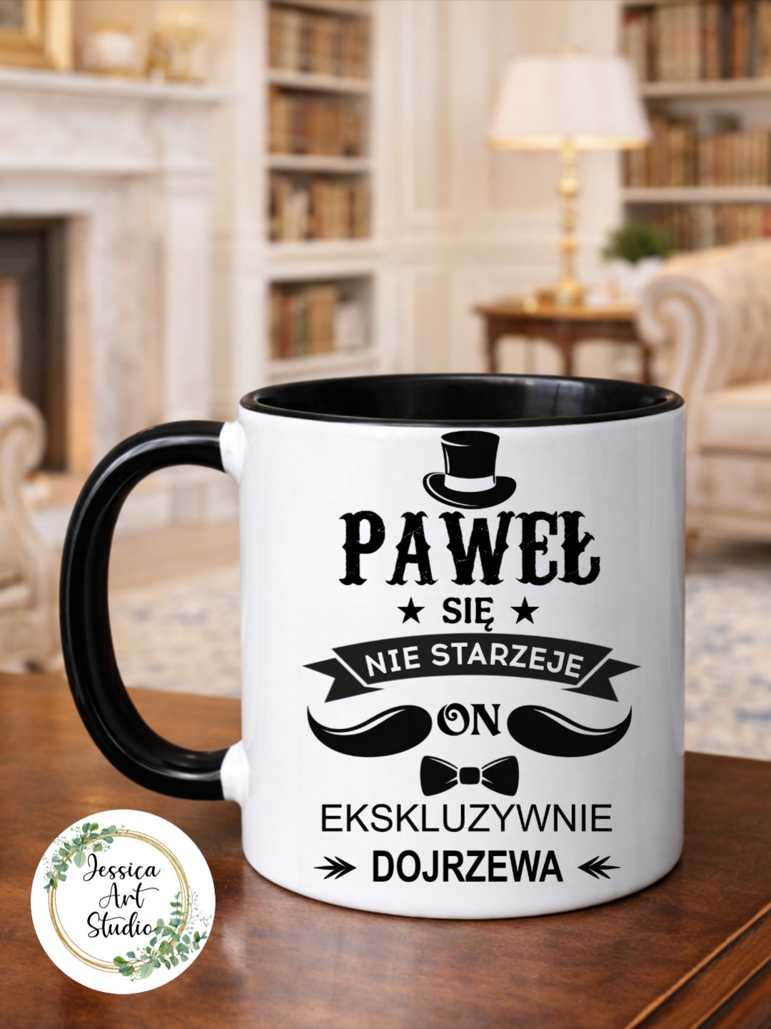 Ten kubek to idealne połączenie humoru i elegancji z lekkim przymrużeniem oka. Klasyczny styl, cylinder i wąsy nadają mu charakter prawdziwego dżentelmena, który doskonale wie, że z wiekiem przychodzi klasa, doświadczenie i jeszcze lepsze poczucie humoru.