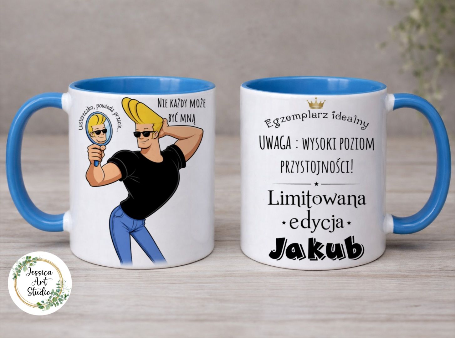 Ten kubek to idealne połączenie humoru, pewności siebie i odrobiny przymrużenia oka. Zabawna grafika z przystojniakiem przeglądającym się w lusterku od razu wywołuje uśmiech i jasno daje do zrozumienia, że nie każdy może być tak idealny. Tekst z tyłu tylko podkręca efekt, podkreślając wysoki poziom przystojności i wyjątkowość właściciela – w końcu to limitowana edycja z imieniem, więc sprawa jest poważna. To kubek, który poprawia humor już od pierwszej kawy i świetnie sprawdzi się jako prezent dla faceta z dystansem do siebie, poczuciem humoru i odrobiną samozachwytu. Idealny na Walentynki, urodziny albo po prostu jako codzienna dawka dobrego nastroju.