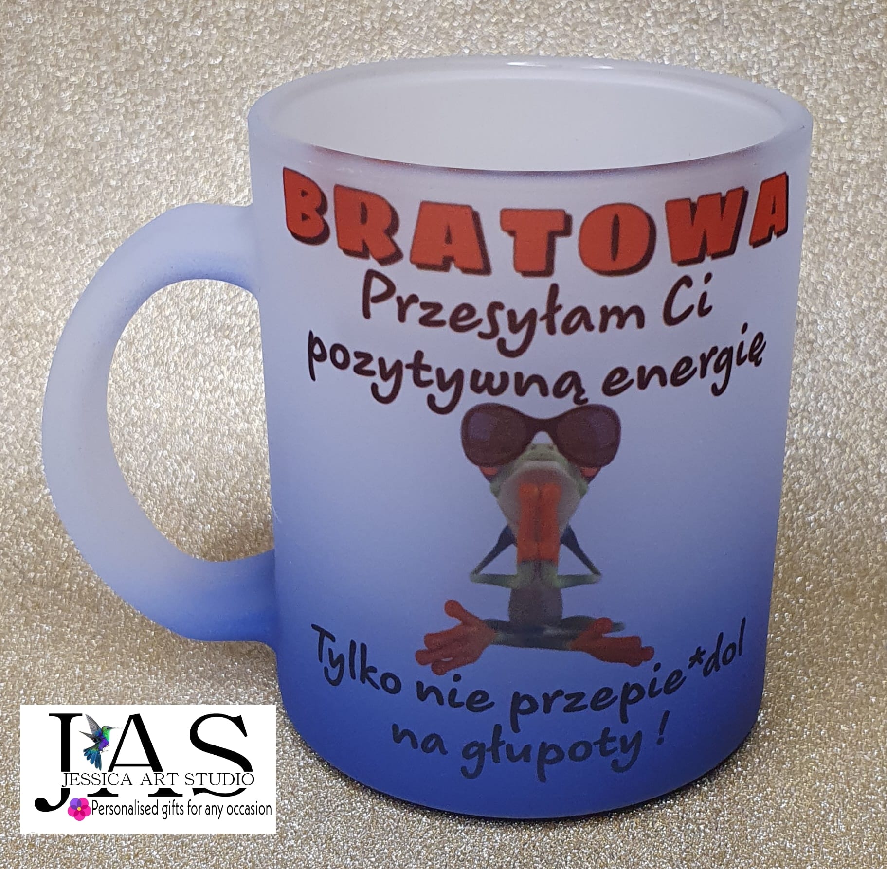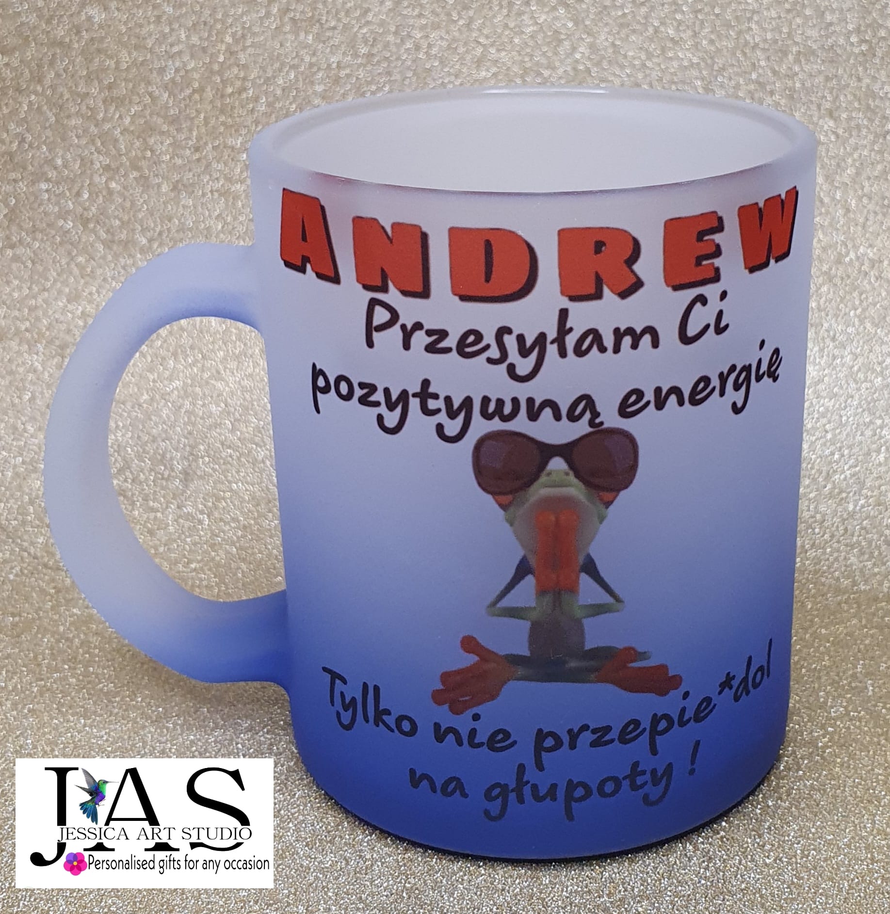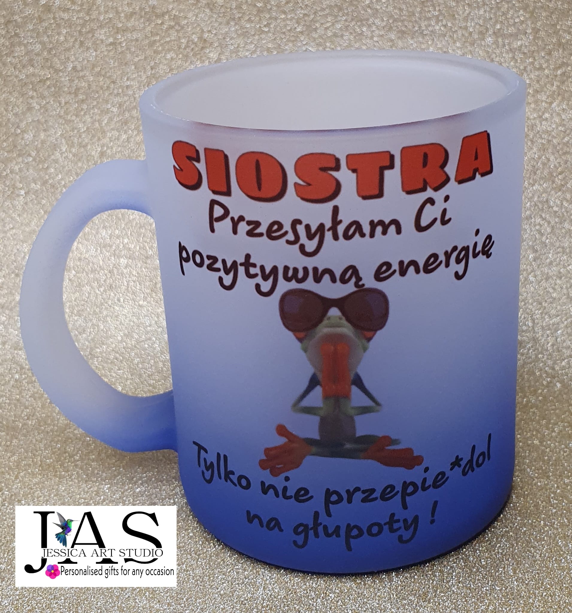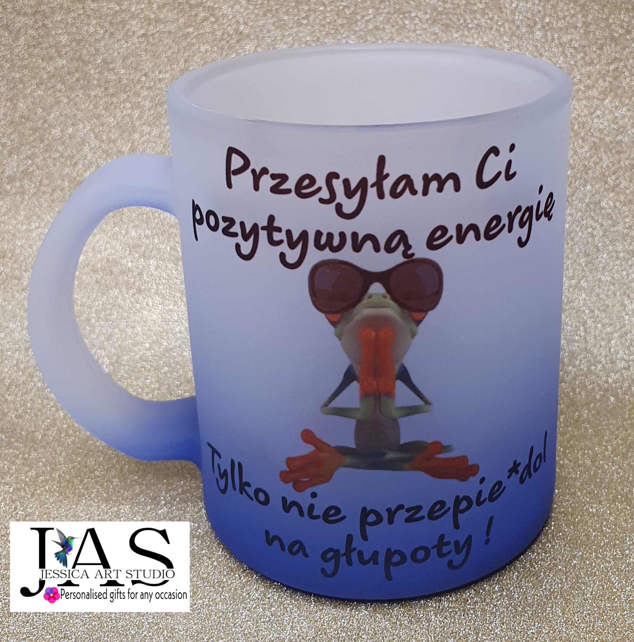 Ten matowy, szklany kubek w odcieniu niebieskiego to idealne połączenie stylu, humoru i pozytywnej energii!