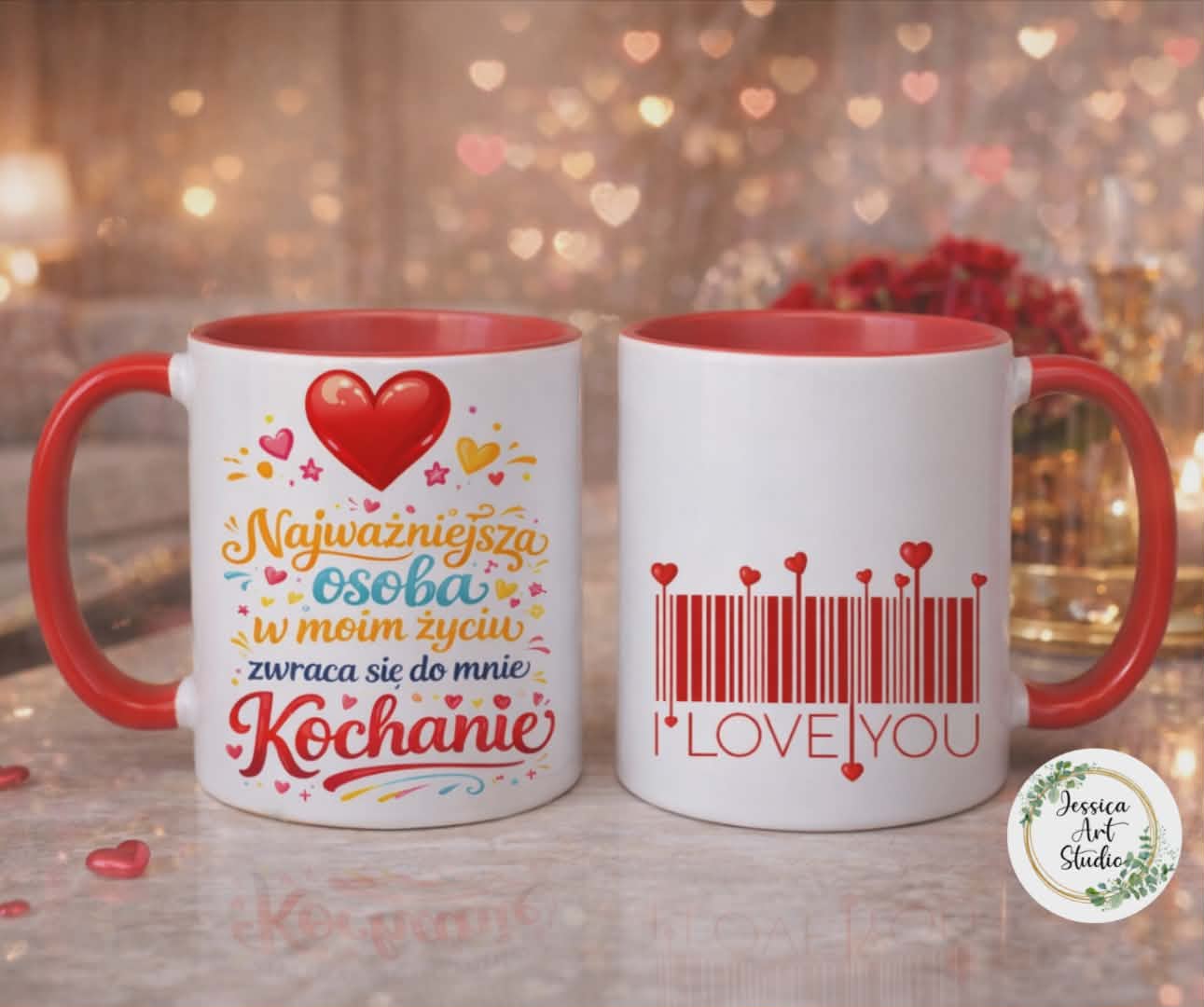 Ten kubek od pierwszego spojrzenia wprowadza ciepły, walentynkowy nastrój. Pełen kolorów napis, delikatne serduszka i wyrazisty przekaz sprawiają, że to idealny sposób, by codziennie przypominać komuś, jak bardzo jest ważny. Każdy łyk kawy lub herbaty staje się małym gestem miłości, który poprawia humor i wywołuje uśmiech.