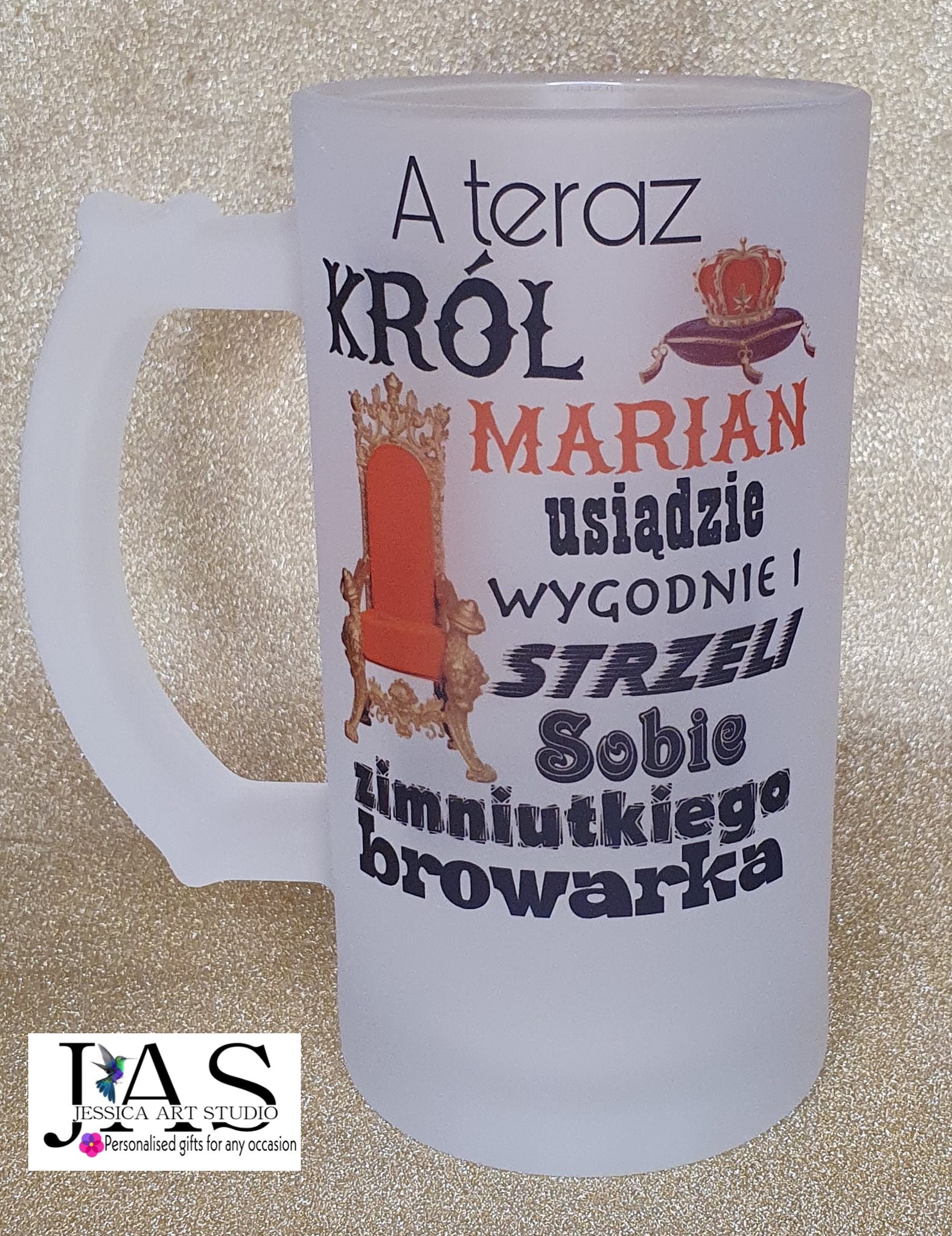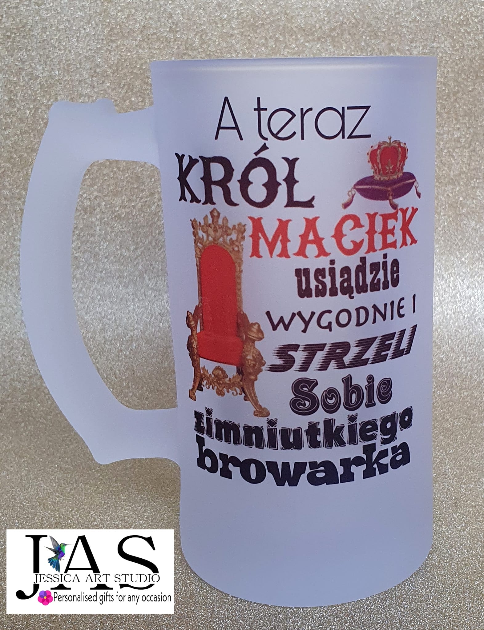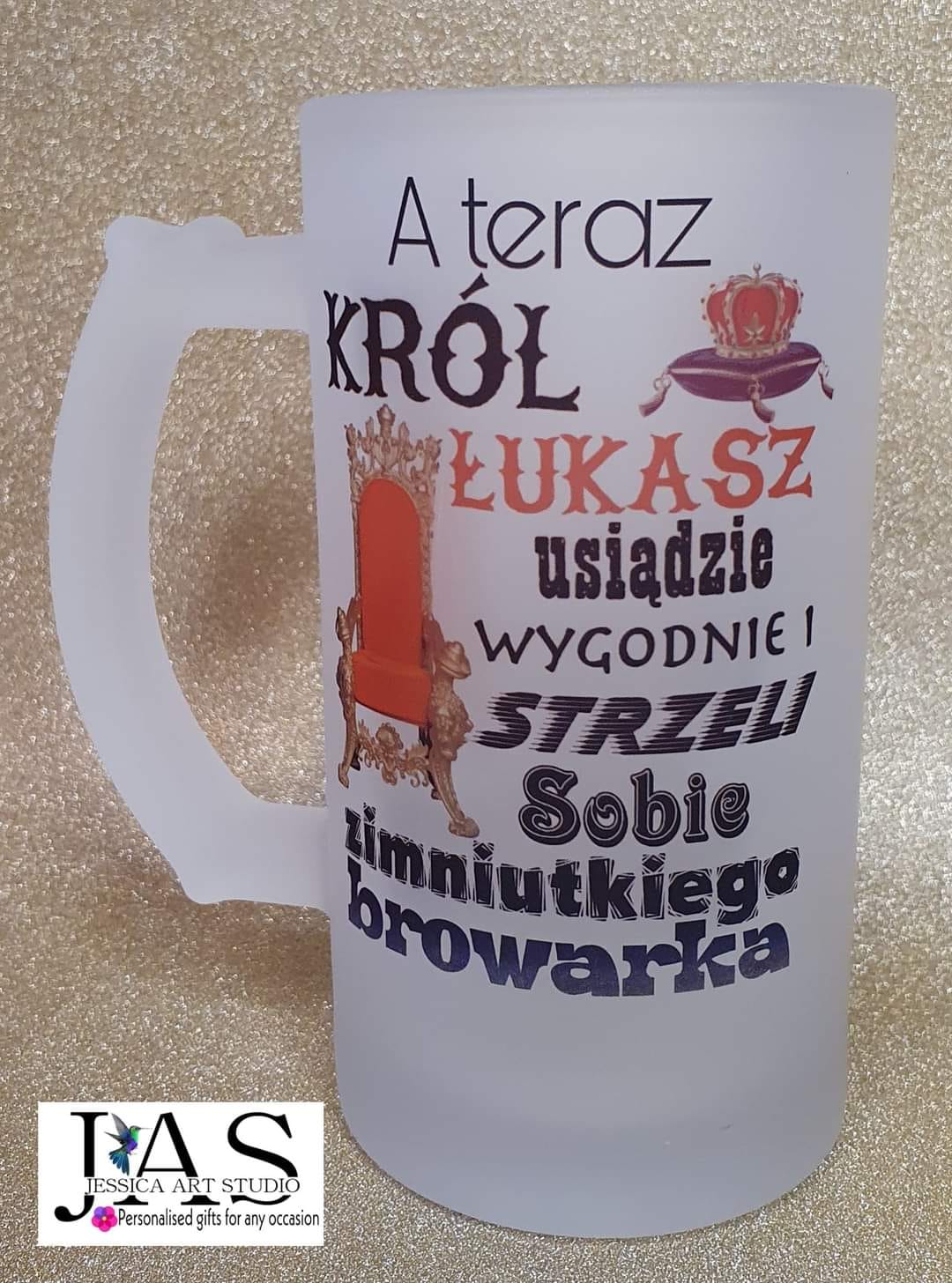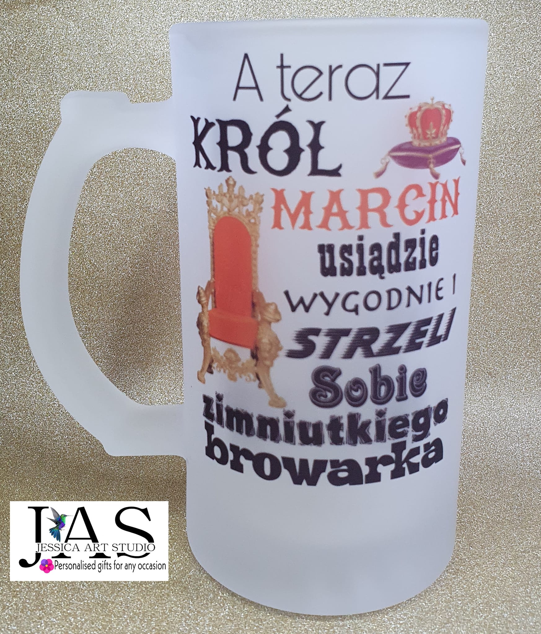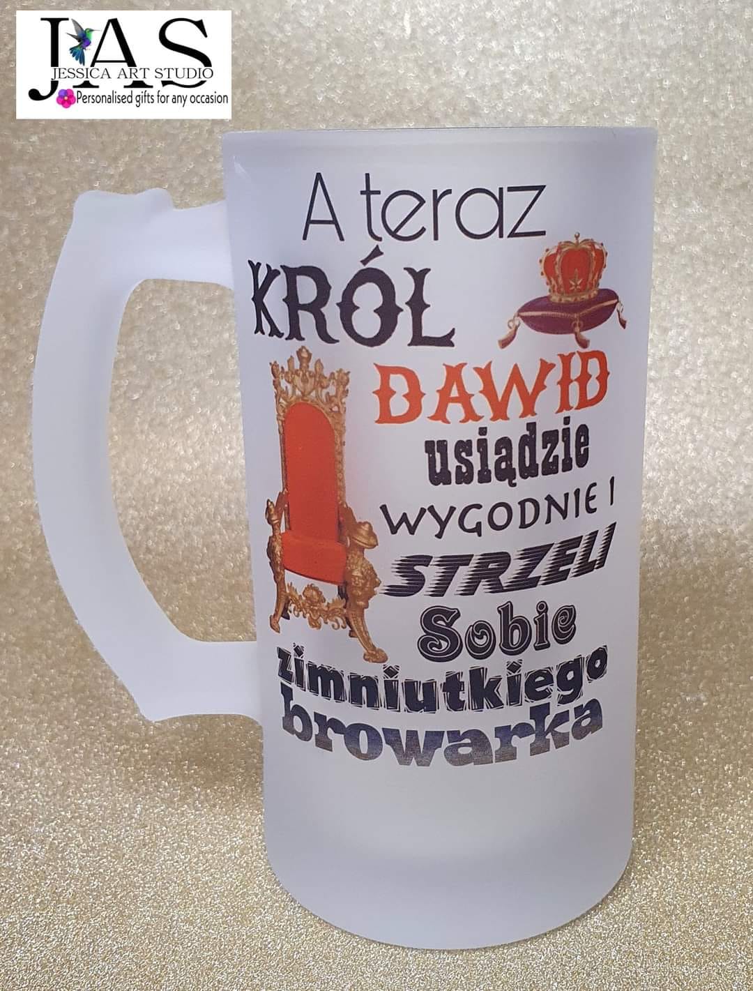 Stylowy, szklany kufel z matowym wykończeniem to idealny towarzysz chwil, gdy czas zwolnić i sięgnąć po zimnego browarka. Humorystyczny nadruk od razu wywoła uśmiech, a personalizacja sprawi, że każdy Dawid (możesz podać inne imię) — poczuje się jak król swojego królestwa. Świetny prezent dla faceta z dystansem, który ceni sobie dobry klimat, chłodne piwo i odrobinę królewskiego luzu. ![]()