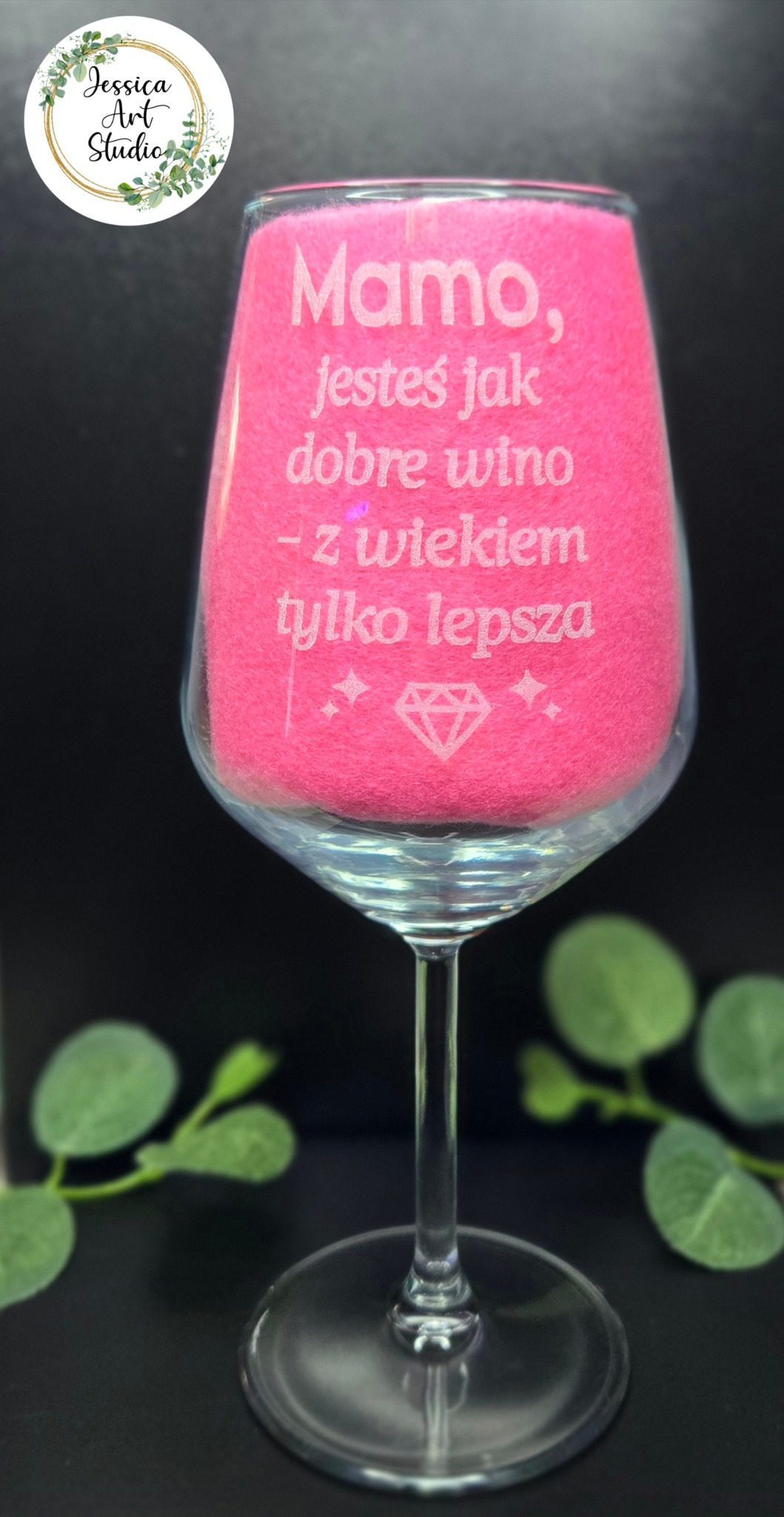 Subtelny napis o tym, że „z wiekiem staje się tylko lepsza”, doda jej uśmiechu i ciepła przy każdym łyku ulubionego wina. Wysokiej jakości szkło i delikatny grawer tworzą prezent z klasą — idealny na Dzień Matki, urodziny lub po prostu jako wyraz miłości i wdzięczności. To upominek, który wzrusza i rozśmiesza jednocześnie. ![]()