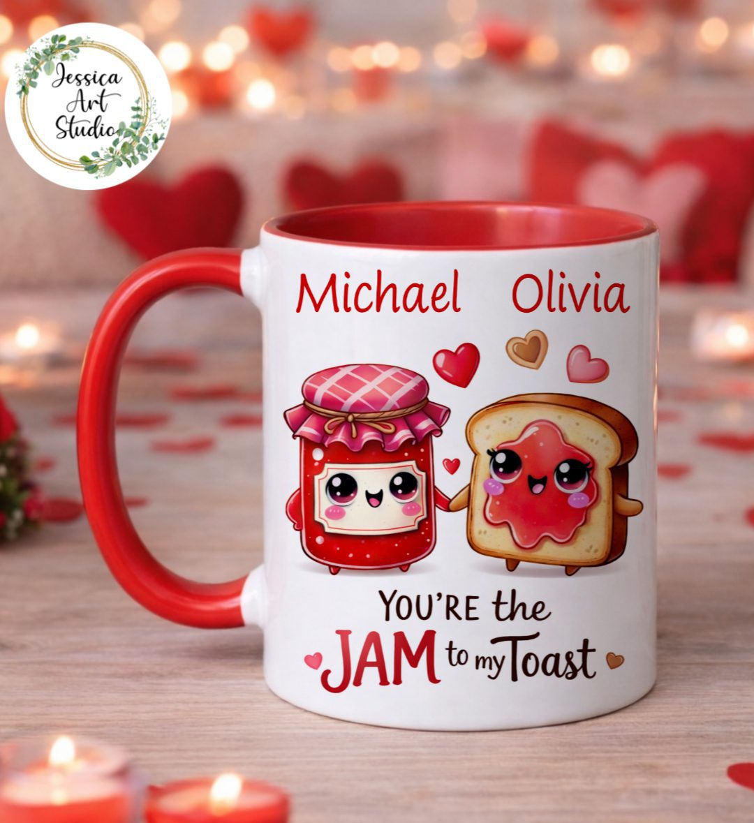 Personalised jam toast mug is a sweet and funny gift for couples who love cute designs and romantic humour.