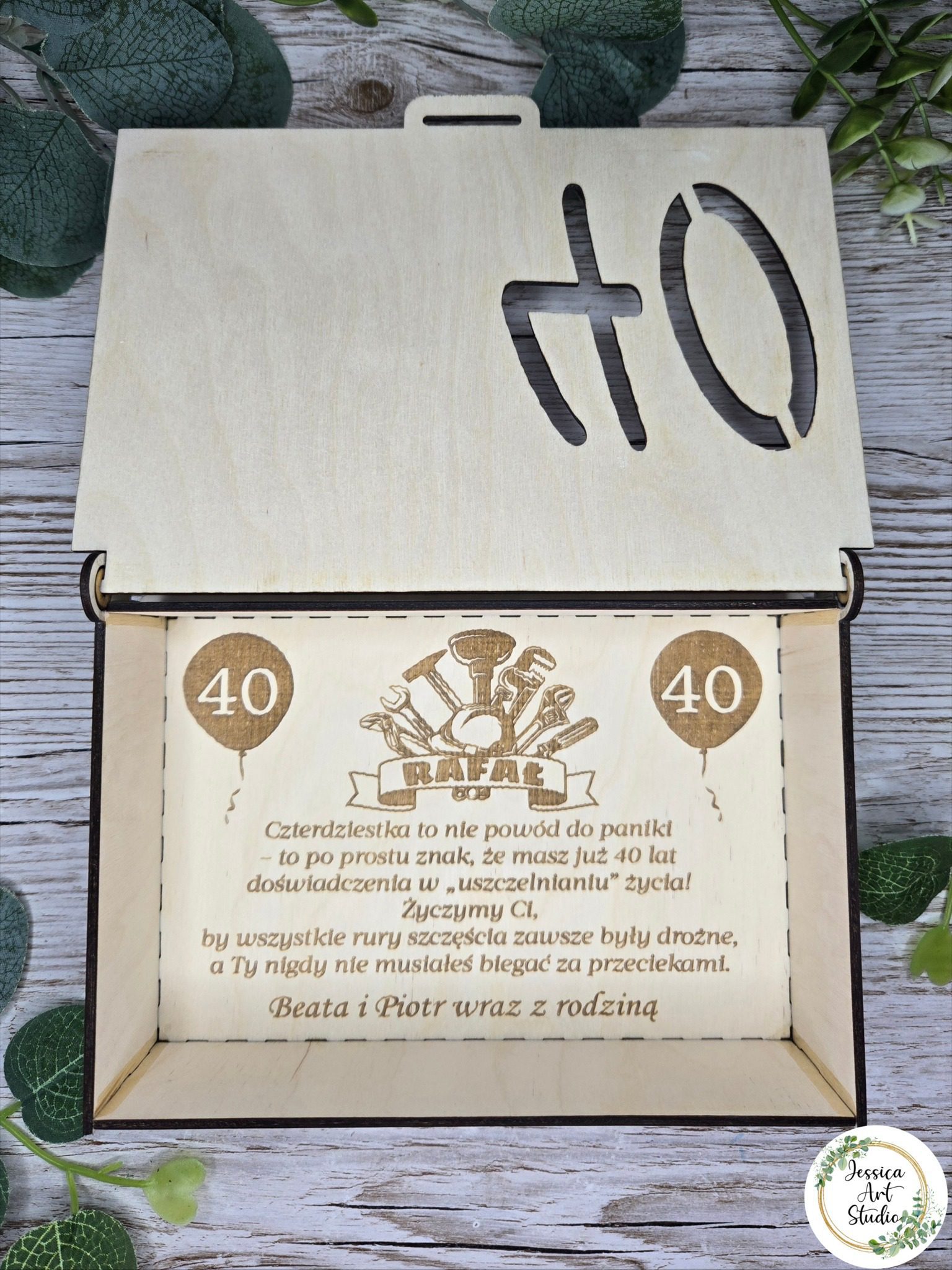 Drewniane pudełko personalizowane – wyjątkowy prezent na 40. urodziny .