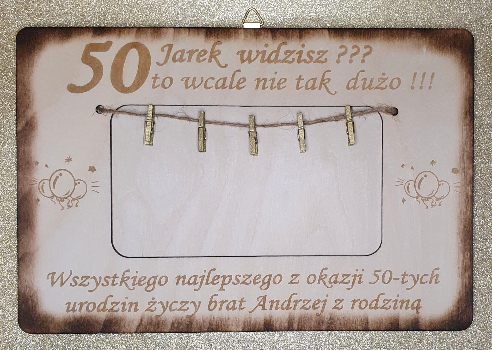 Zamiast zwykłej koperty podaruj wyjątkową, drewnianą ramkę z klamerkami i sznureczkiem, która zrobi prawdziwe wow na każdej imprezie!