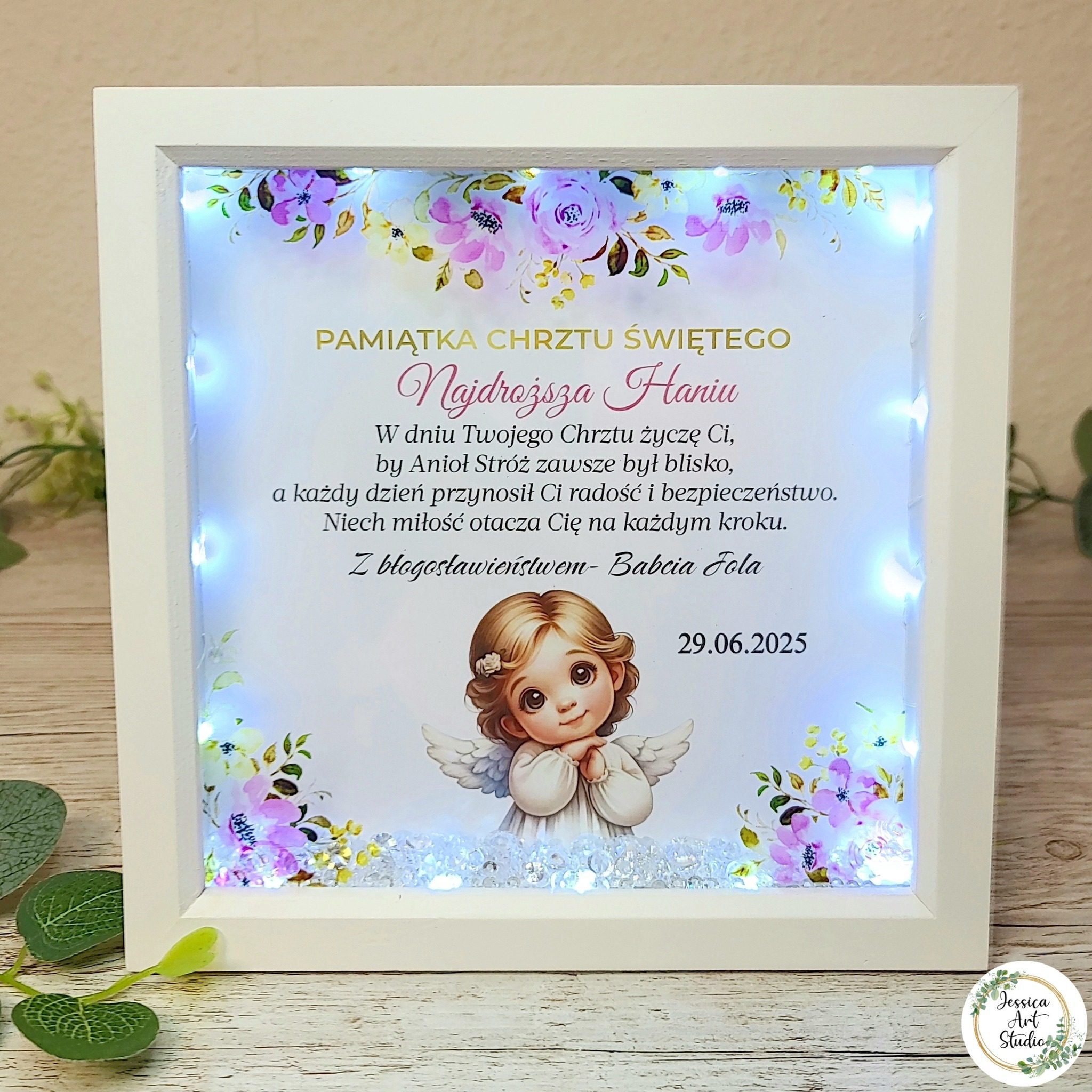 Ta wyjątkowa ramka LED z kryształkami to coś więcej niż upominek – to symbol miłości, troski i błogosławieństwa, który będzie towarzyszył dziecku przez całe życie.