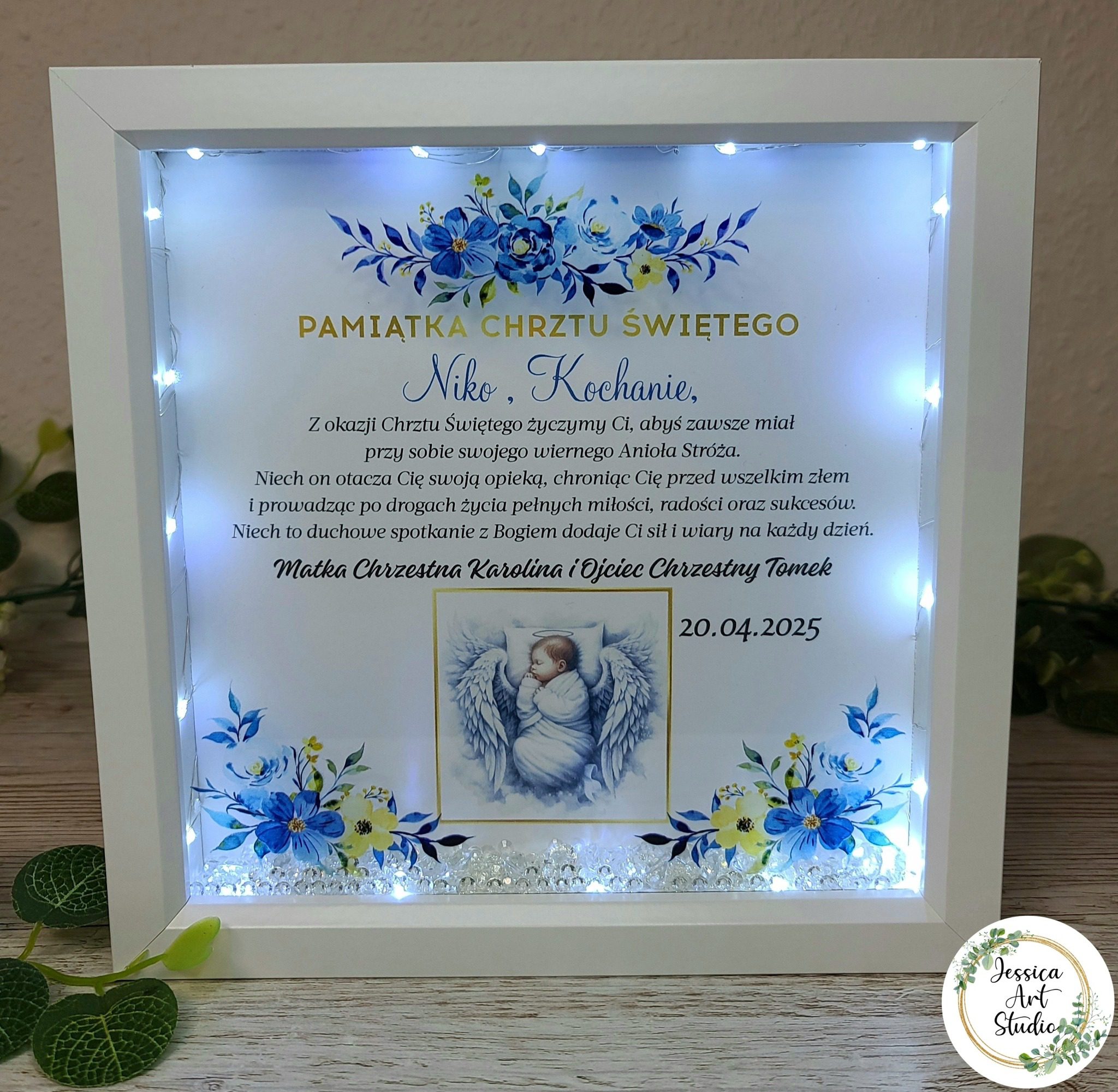 Personalizowana, elegancka i wzruszająca – idealny prezent na Chrzest Święty. Delikatne światło LED, błyszczące kryształki i imię maluszka tworzą razem magiczną kompozycję, która rozświetli każdy dom i serce