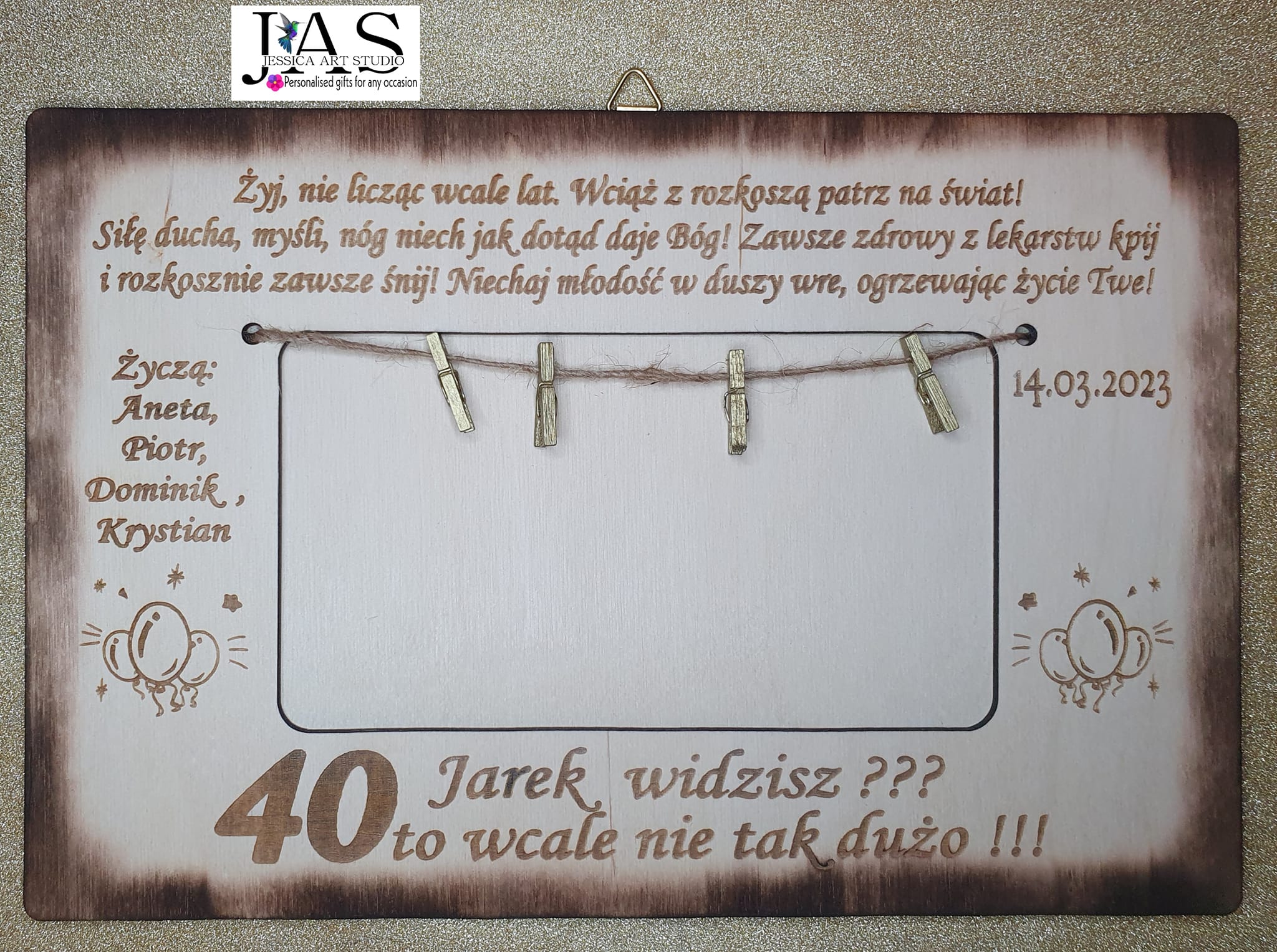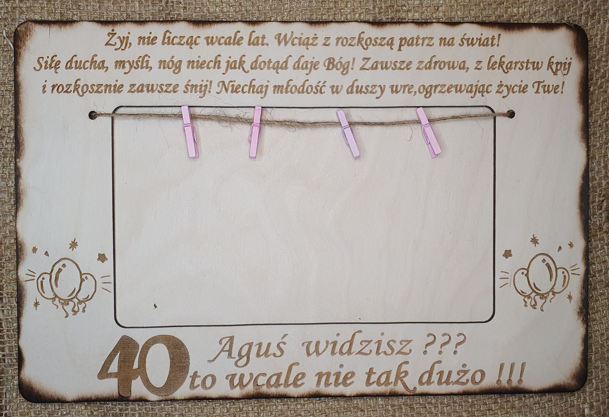 Zamiast zwykłej koperty podaruj wyjątkową, drewnianą ramkę z klamerkami i sznureczkiem, która zrobi prawdziwe wow na każdej imprezie!