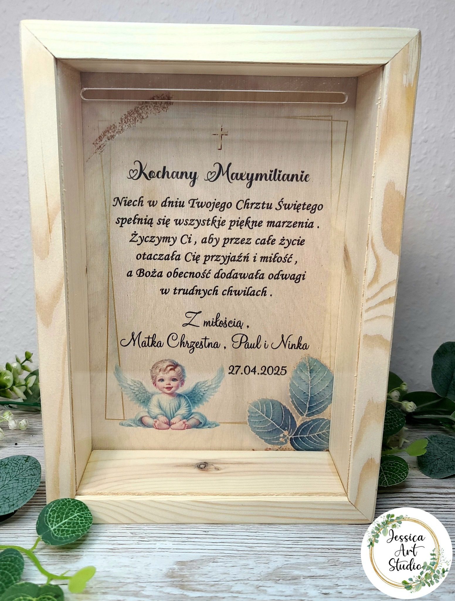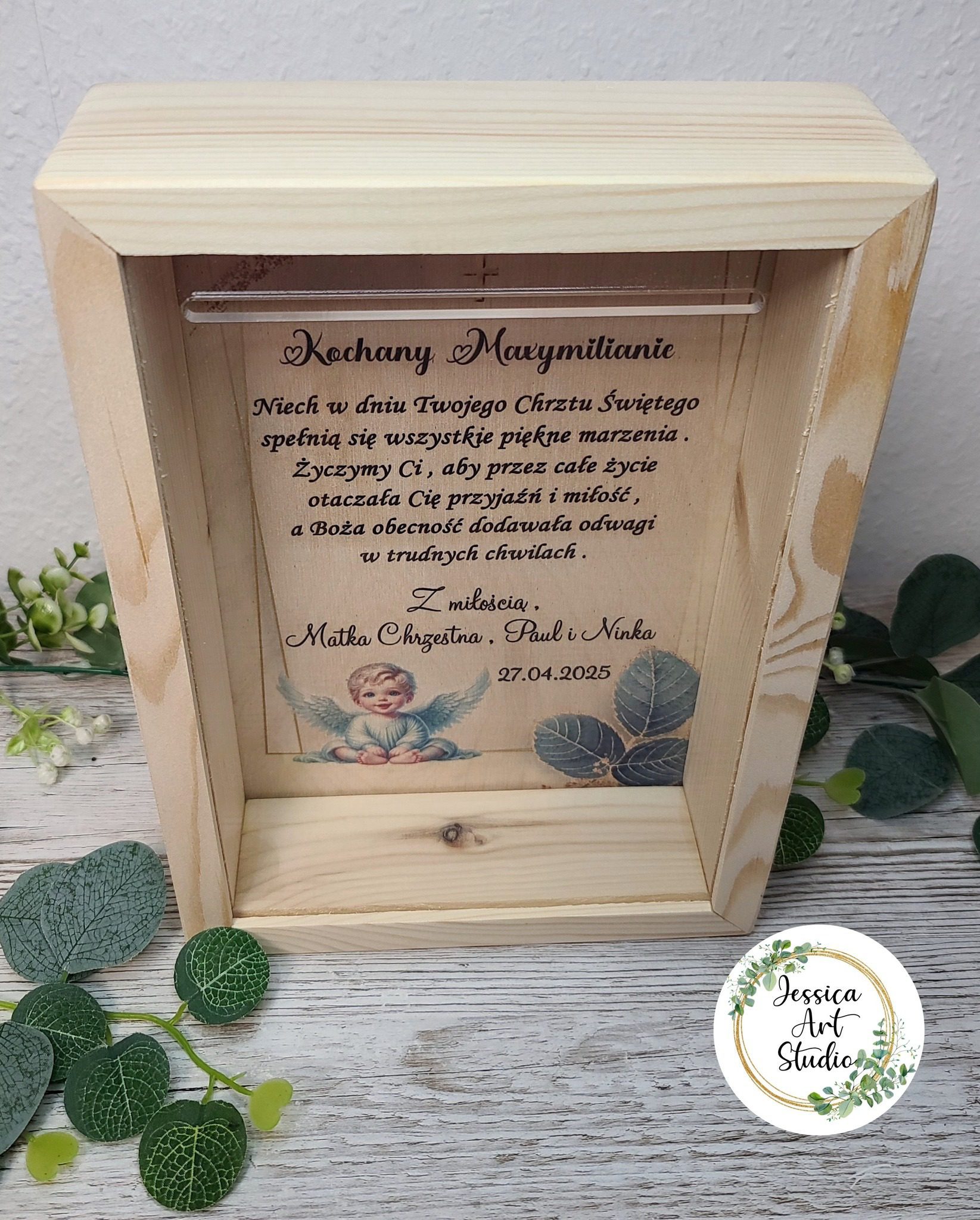 Personalizowana Drewniana Skarbonka – Wyjątkowa Pamiątka Chrztu Świętego!