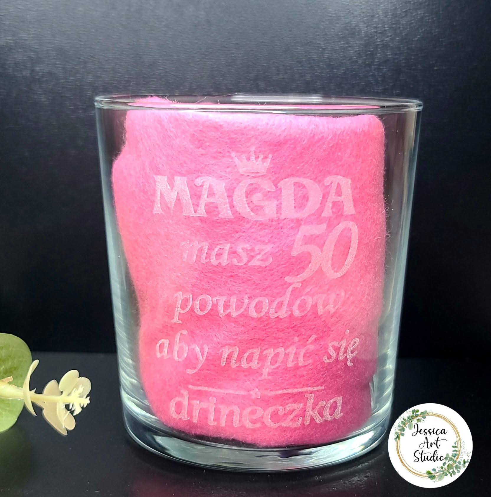 50 powodów do toastu! 🥂 Personalizowana szklanka z grawerem – idealny prezent na urodziny dla Magdy lub każdego jubilata 😄