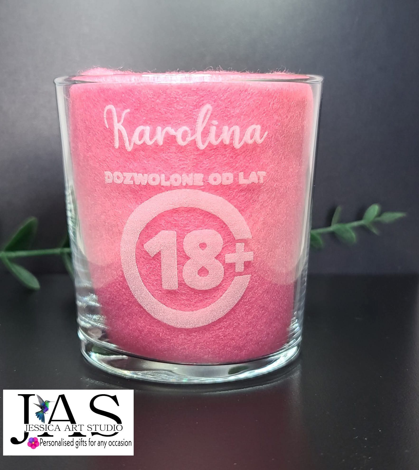 Szklanka z grawerem „Karolina – dozwolone od lat 18” to hit każdej osiemnastki!